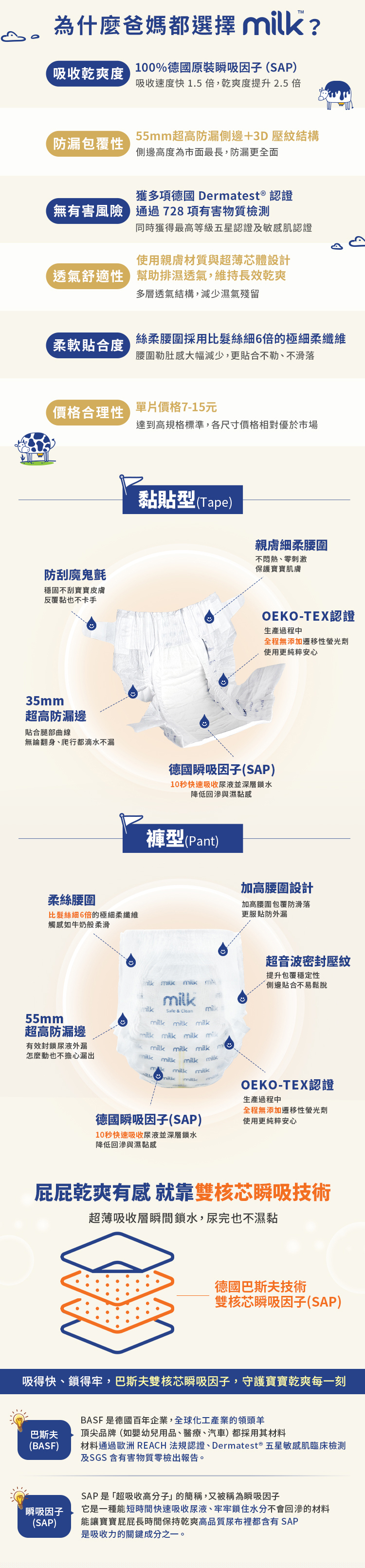 -使用德國頂級瞬吸因子(SAP),讓寶寶長時間保持清爽不悶濕