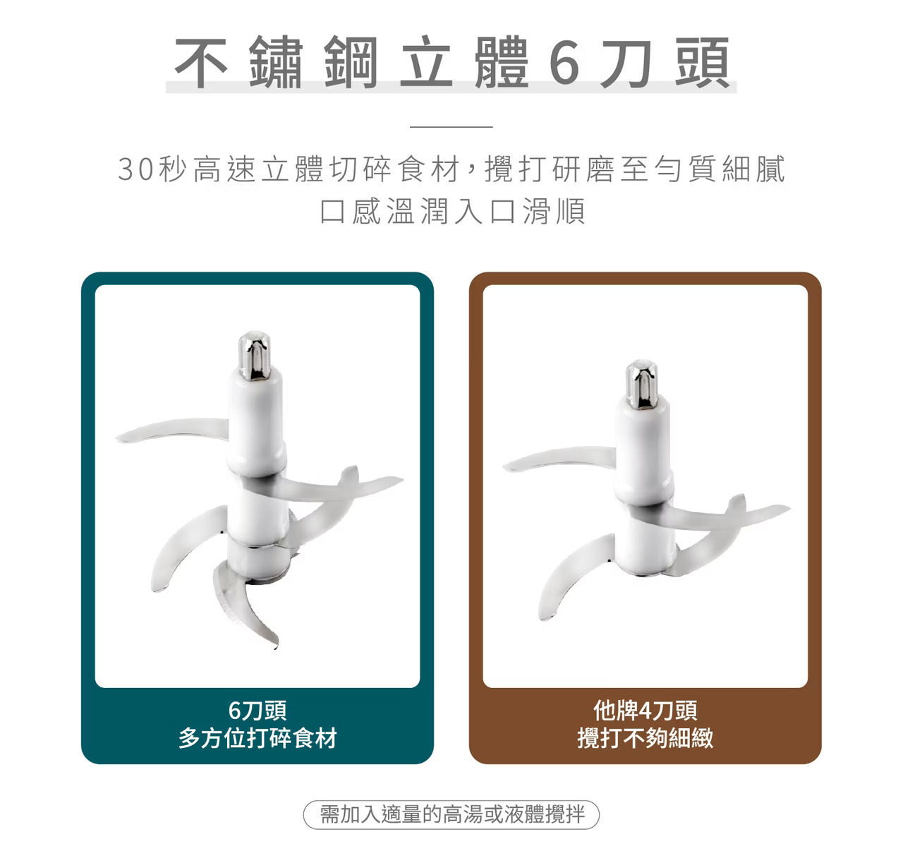 -不鏽鋼立體6刀頭,攪打研磨細膩