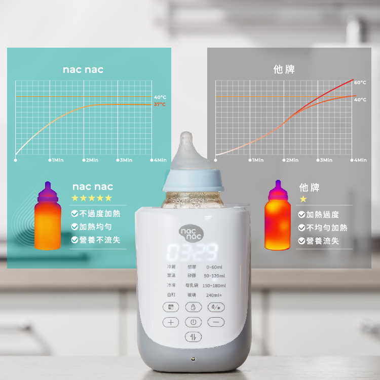 - 智能溫奶,自動計算奶水加熱時間,不需要手動調整