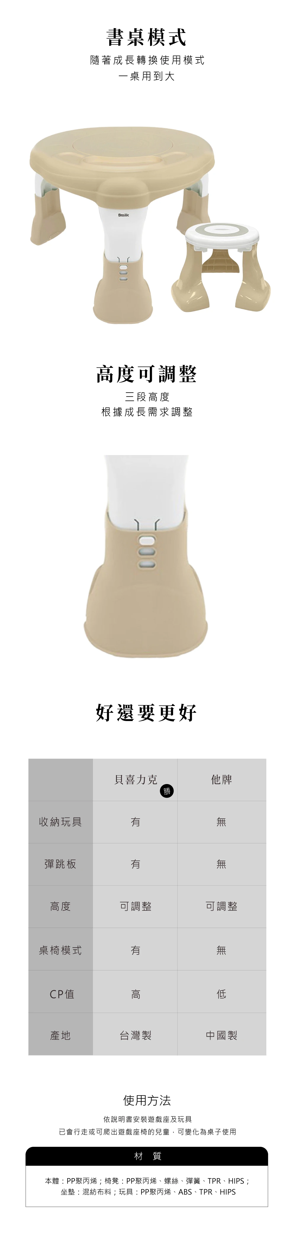 - 多功能2in1:寶貝成長的遊戲座,長大接續當學習桌