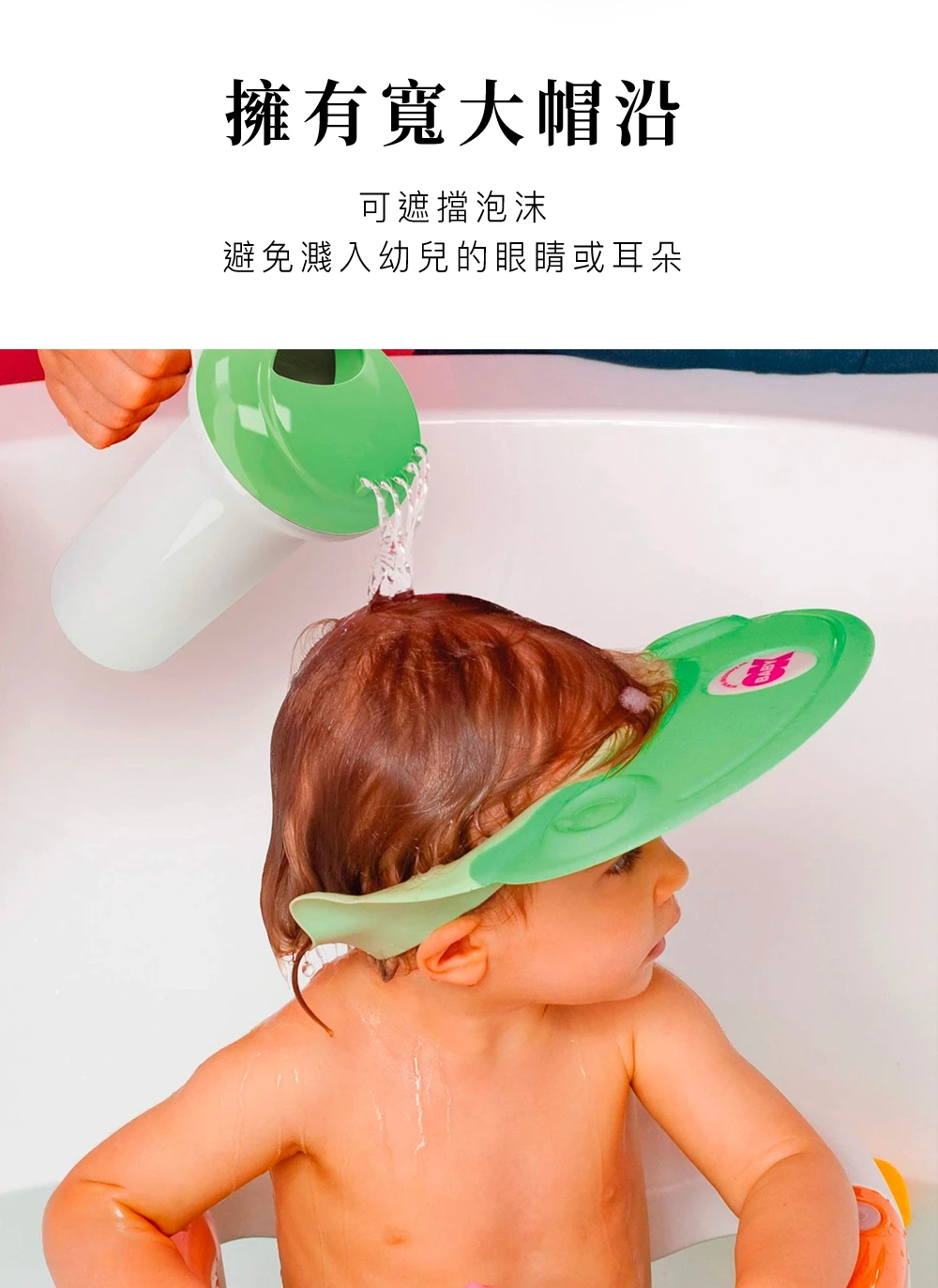 - 擁有寬大帽沿可遮擋泡沫