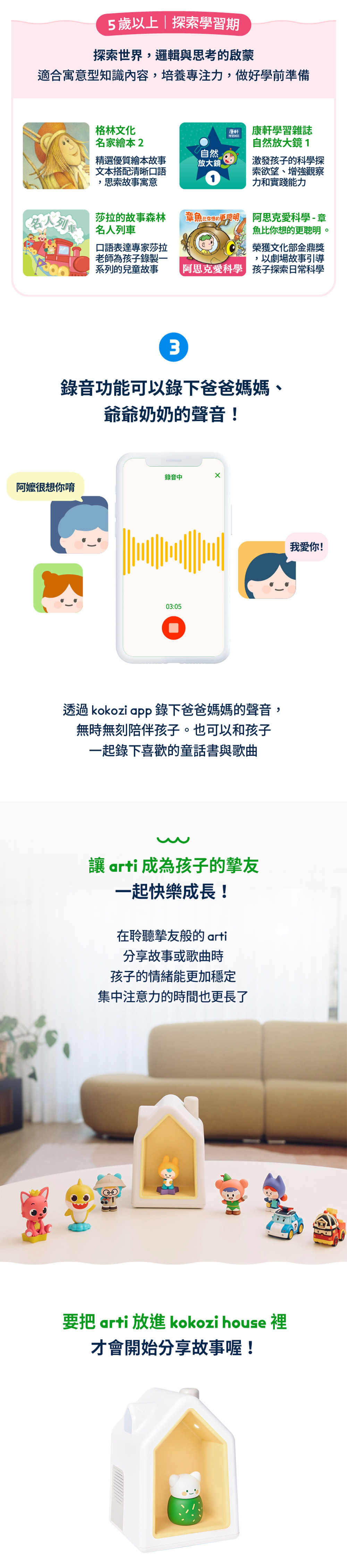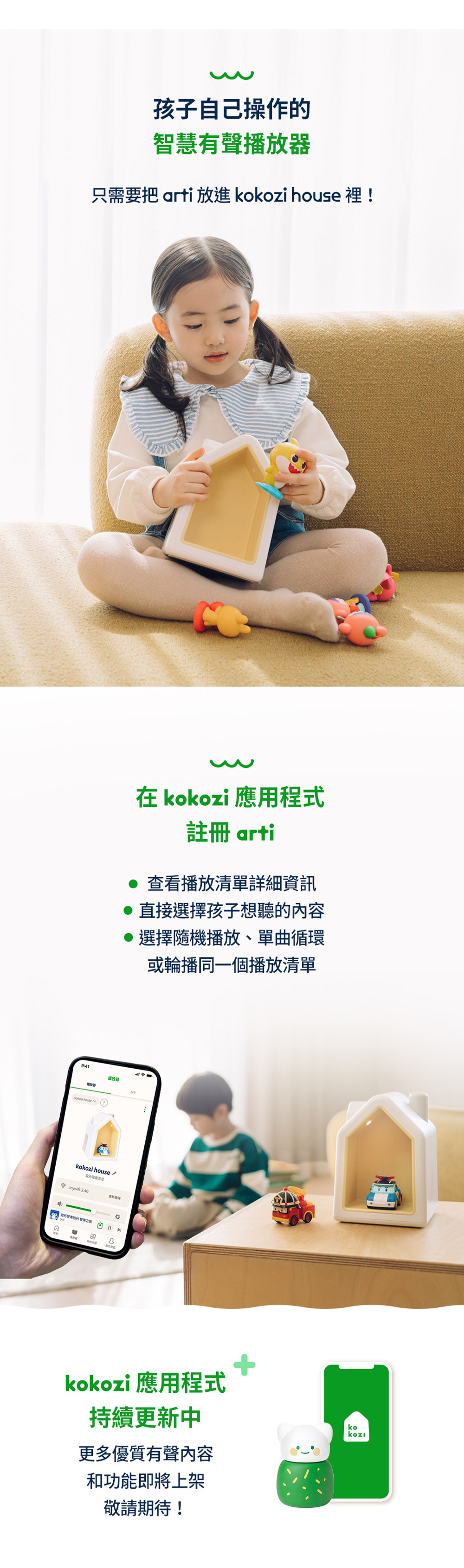 · arti 及 magic arti 需搭配並放入 kokozi house 播放器,才能播放內容。