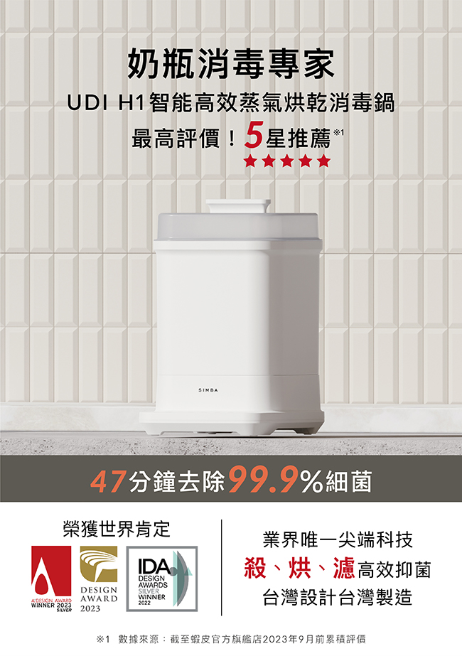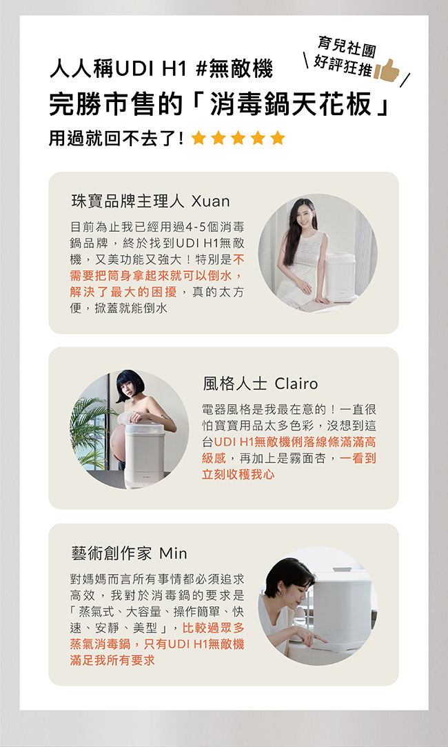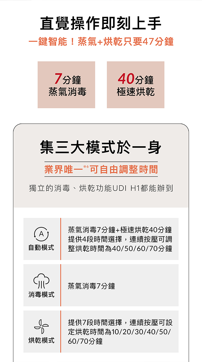 UDI H1智能高效蒸氣烘乾消毒鍋(杏茶)*1