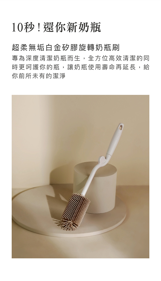 超柔無垢白金矽膠旋轉奶瓶刷(小麥)-米*1